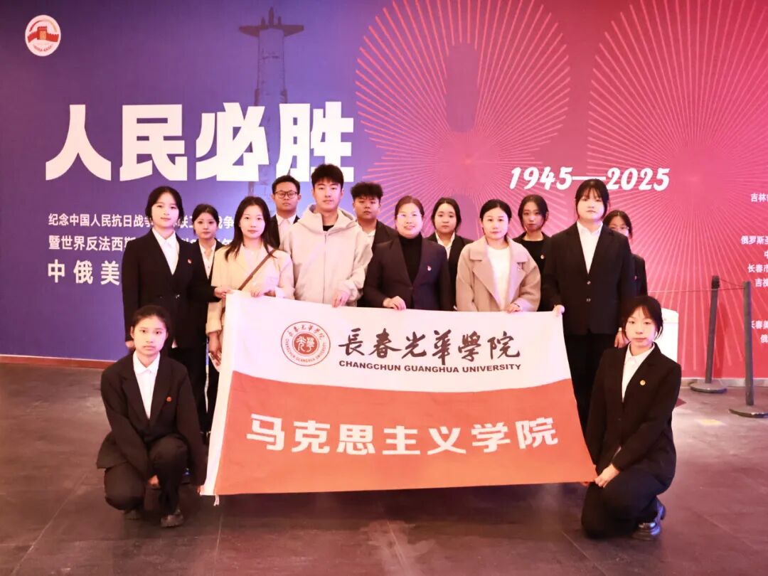 为纪念中国人民抗日战争、苏联卫国战争暨世界反法西斯战争胜利80周年,铭记历史,缅怀先烈,10月16日,长春光华学院现代教育学院联合马克思主义学院共同走进长春美术馆,观看“人民必胜——纪念中国人民抗日战争、苏联伟大卫国战争暨世界反法西斯战争胜利80周年中俄美术作品展”,马克思主义学院院长薛丽、现代教育学院院长刘国权、现代教育学院党总支副书记韩刚、师生党员、学生骨干、2025级学生代表参加观展活动。