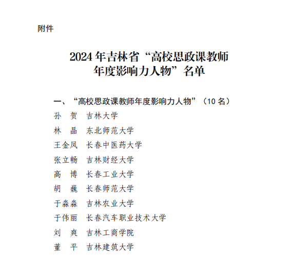 马克思主义学院刘秋菊老师被评为2024年吉林省高校思政课教师年度影响力提名人物。