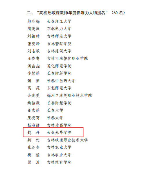 马克思主义学院赵丹老师被评为2025年吉林省高校思政课教师年度影响力提名人物。