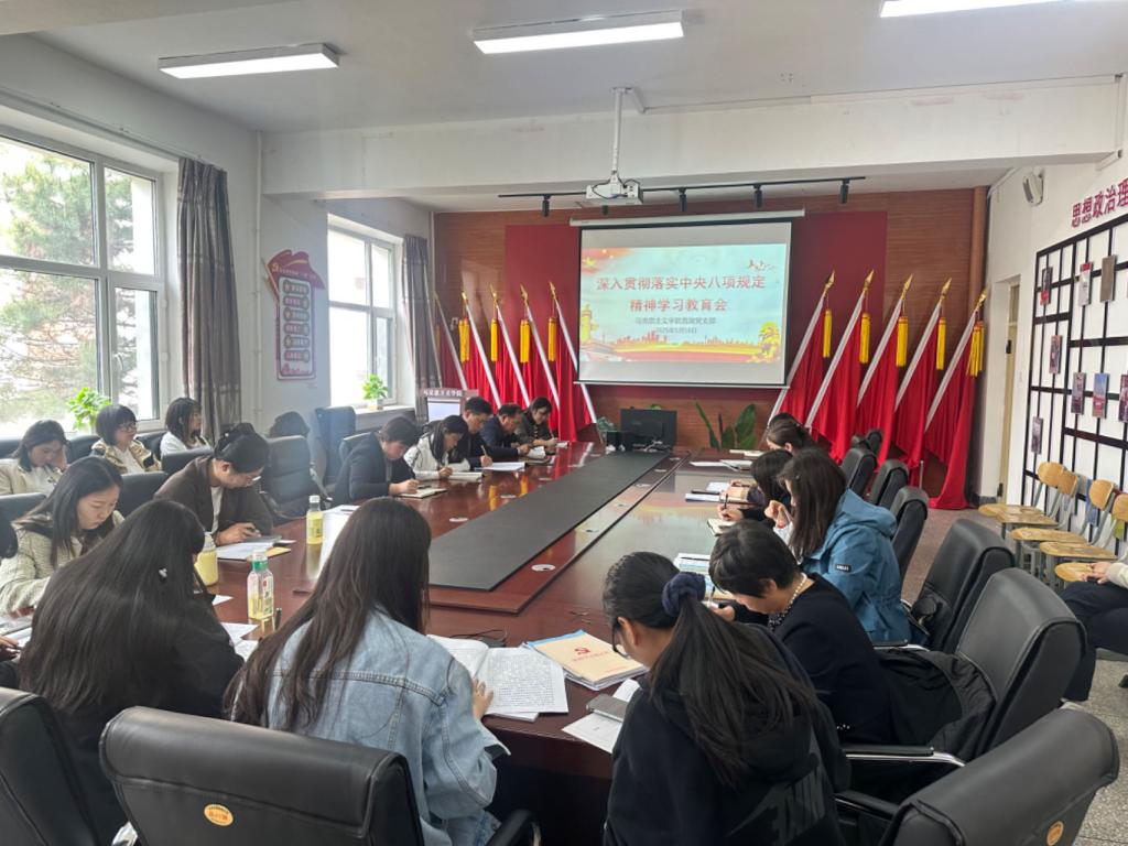 2025年5月16日,马克思主义学院在一教202会议室召开深入贯彻中央八项规定精神学习教育会。学院党支委委员、全体党员教师参加会议。会议由党支部书记薛丽主持。